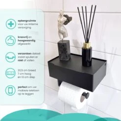 Toiletrolhouder Met Bakje – WC Rolhouder Zwart – Toiletrolhouder Met Extra Opbergruimte