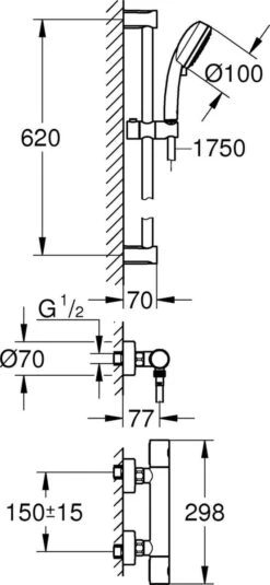 GROHE Grohtherm 2000 EasyReach Douche Tray – 15 Cm Hartafstand