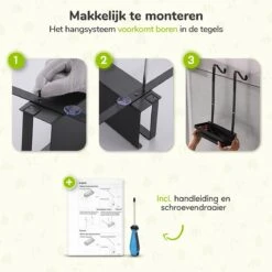Doucherek Zonder Boren – Zwart – 2-Laags Doucherekje – Hangend Aan Douchewand