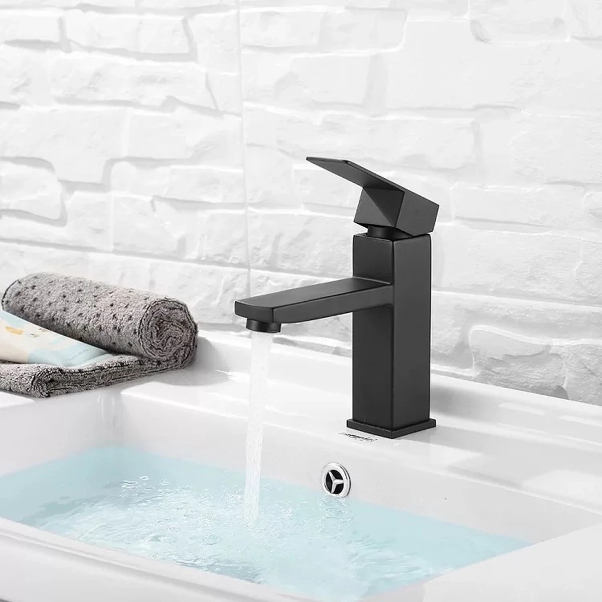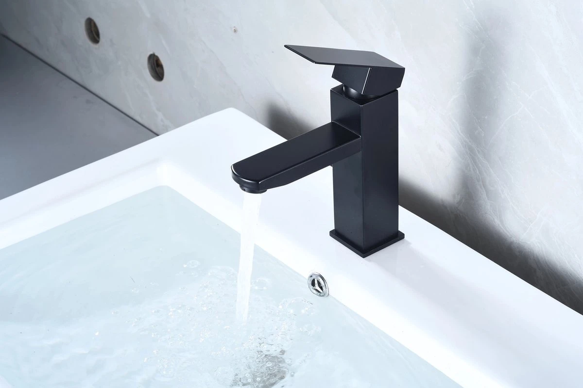 Het design van deze kraan is strak en verfijnd, wat zorgt voor een subtiele toevoeging aan jouw badkamer. De mat zwarte kleur van deze kraan is tegenwoordig hartstikke trendy en past perfect in een moderne of industriële badkamer.