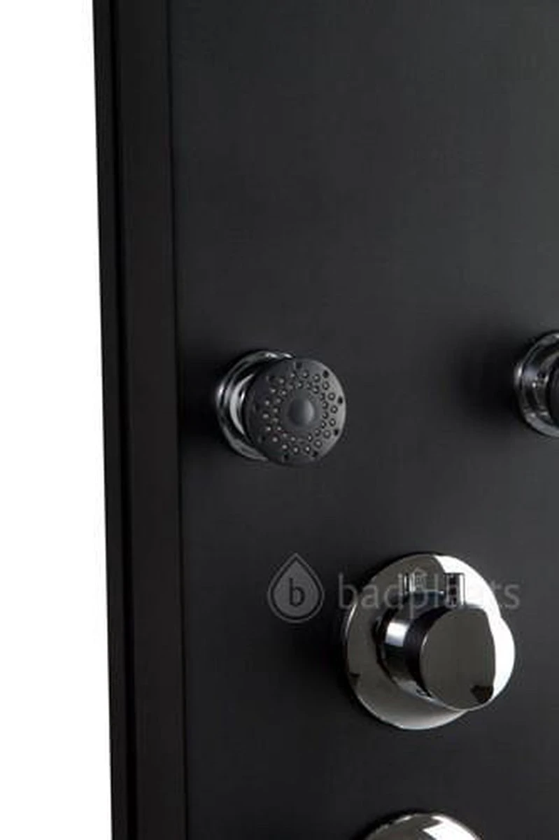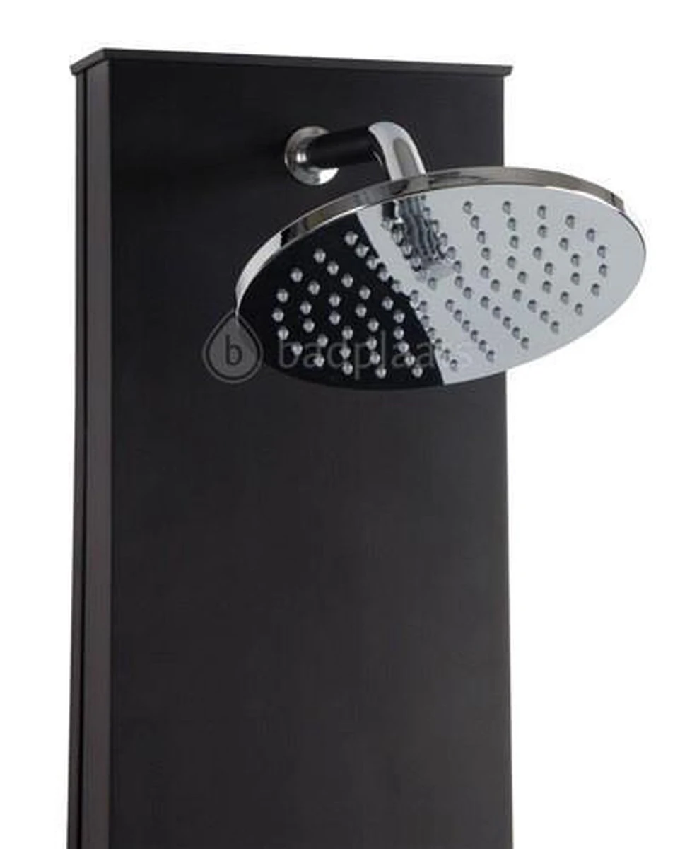 Douchepaneel Valencia is een zwart douchepaneel uitgevoerd met een mengkraan. Het douchepaneel heeft zes massage units, één handdouche en één hoofddouche. Verder heeft het douchepaneel één draaiknop waarmee de drie douchestanden worden geregeld. Dit betekent dat maximaal twee verschillende standen tegelijk gebruikt kunnen worden. De andere draaiknop op het douchepaneel wordt gebruikt voor het regelen van de temperatuur door middel van een mengkraan.