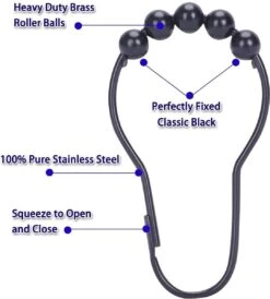 Douchegordijnringen met zware sluiting – De douchegordijnringen zijn sterk genoeg om een zwaar gordijn te dragen. Ze zijn afgedicht, waardoor het gordijn onmogelijk van de ringen kan glijden.
