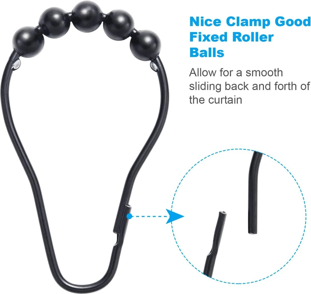 Gratis verguldsel- Geen haperen, geen moeite, geen gedoe. Deze douchegordijnhaken zijn voorzien van speciaal ontworpen bolvormige kogels om de wrijving te verminderen en moeiteloos over de stang te glijden met vrijwel geen enkele inspanning.