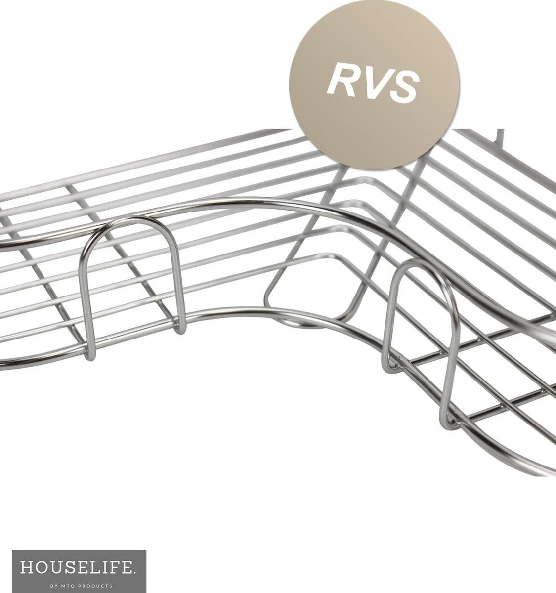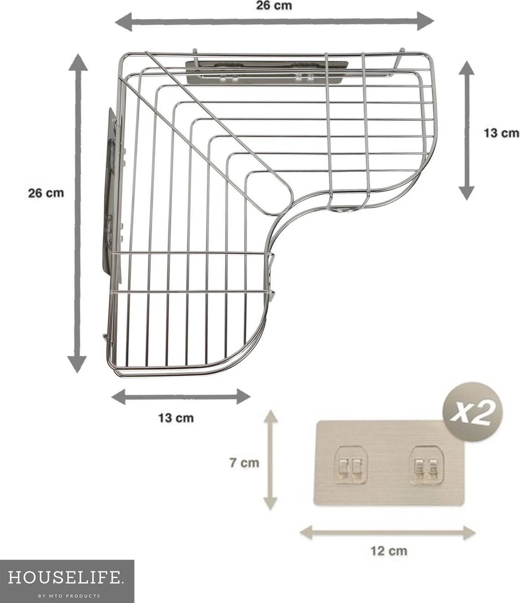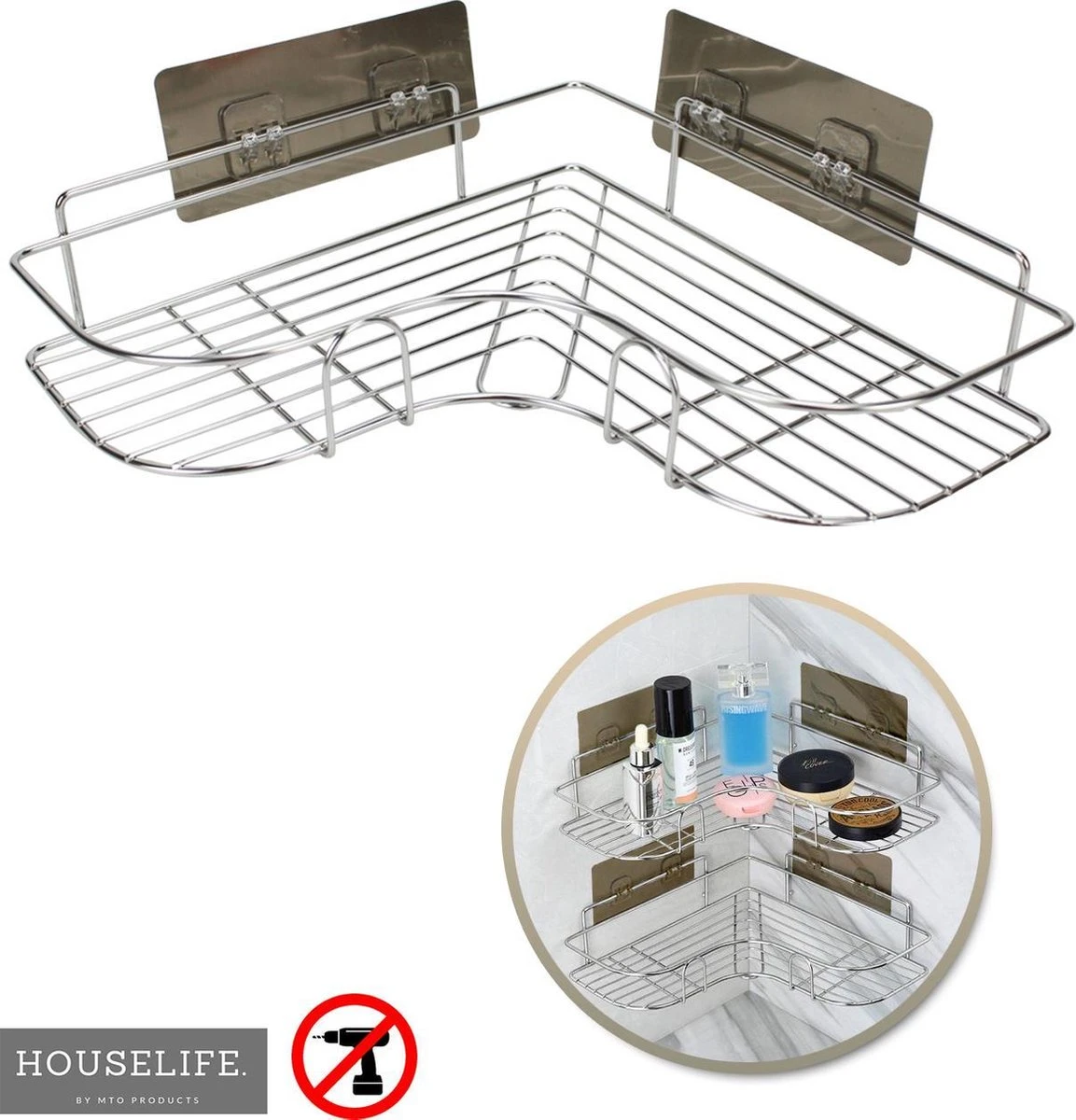 Gemaakt van Roestvrij Staal (RVS) berg je gemakkelijk je shampoo, conditioner en douchegel op in dit doucherek. Met zijn praktische 90º hoek design van dit douchemandje bespaar je ook gemakkelijk ruimte in je douche.