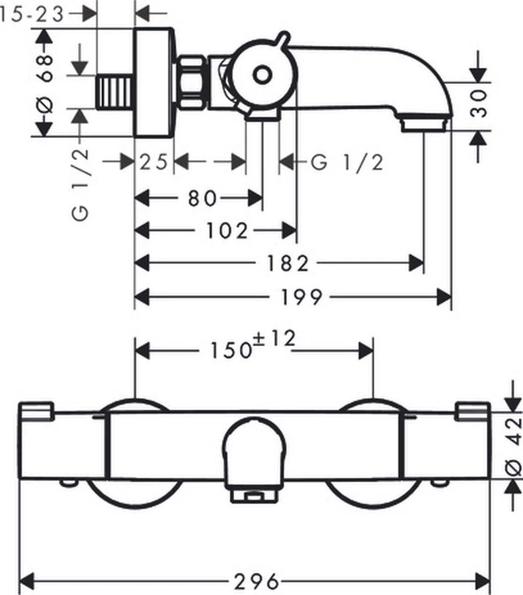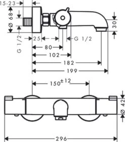 De thermostaat voor het bad wordt met meegeleverde S-aansluitingen aan een bestaande wateraanvoer geschroefd 150 mm, +/-12 mm). Daardoor is deze thermostaat heel geschikt voor het moderniseren van de badkamer, want de muur hoeft niet te worden opengebroken. De doucheslang wordt daarna met de standaardaansluiting op de thermostaat aangesloten. Klaar.