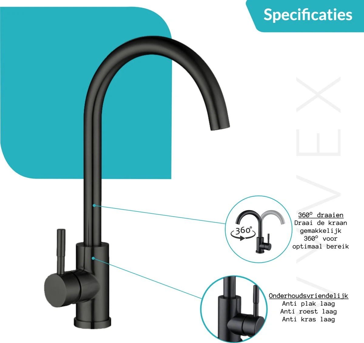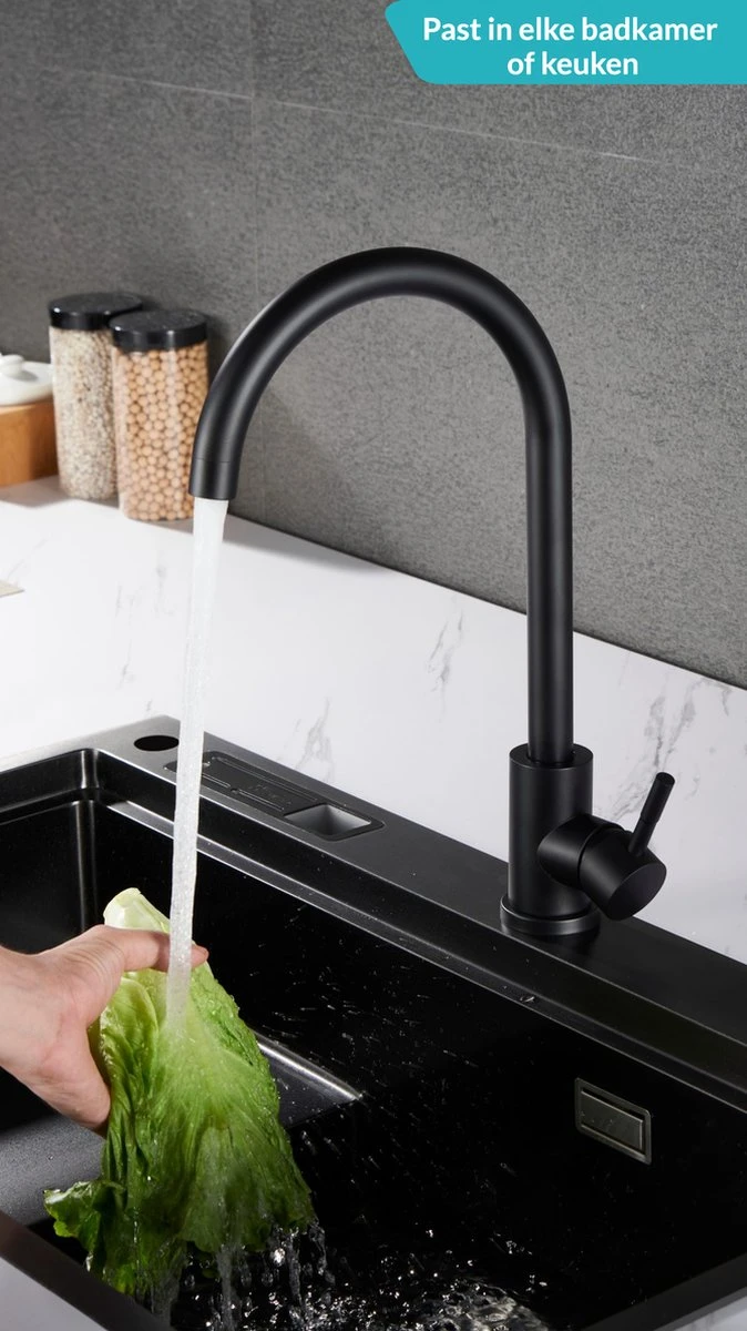Deze matte zwarte uitvoering creëert een stijlvol, modern en minimalistisch effect wat jouw keuken of badkamer net dat beetje extra uitstraling brengt. Dit fraaie design met een moderne uitloop maakt de wasbak of wastafel daarnaast ruimer en meer open, waardoor de keuken of badkamer optisch groter lijkt.