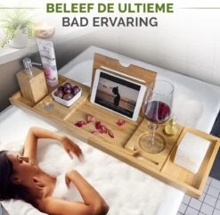 De badplank is geschikt voor elke badkuip, je kunt de plank uitschuiven tot maar liefst 95 cm breed. Voor iedereen ultiem ontspannen met de meest favoriete items binnen handbereik. Ook is de badplank kindvriendelijk in gebruik, door de mooi afgeronde hoeken.