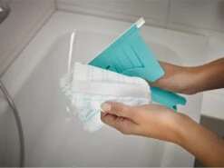De tegel- en badkamermop Flexipad maakt het poetsen van de badkamer enorm eenvoudig. Dankzij zijn beweeglijkheid en de grote reikwijdte komt de Flexipad tot in de achterste hoeken – zonder dat u met een pijnlijke rug over de badkuip of in de douche hoeft te buigen. Door de ronde uitsparing past het mopvlak van de Flexipad precies in de vorm van armaturen en verwijdert met een paar bewegingen vieze vuilranden. Door zijn 360°-scharnier is hij daarbij zeer wendbaar. Hij komt moeiteloos onder elke badrand, kan goed om armaturen worden geleid en reinigt zorgvuldig elke hoek. Op lastig toegankelijke plaatsen kan de telescoopsteel worden gebruikt, die kan worden uitgetrokken tot een werklengte van 75 tot 120 cm. Na de vochtige reiniging wordt de Flexipad eenvoudigweg omgedraaid en vervolgens wordt er met de treklip een prachtige glans op de tegels en douchecabine aangebracht. De doek van de tegel- en badkamermop Flexipad bestaat uit de bewezen Leifheit-microvezel duo. Rijen met de fijnste, licht verhoogde borstelharen reiken tot in de dieperliggende voegen en verwijderen ook hardnekkig vuil, zoals kalk en zeepresten zonder enige krachtinspanning. De mopbreedte bedraagt 20 cm. Leifheit biedt 3 jaar garantie.