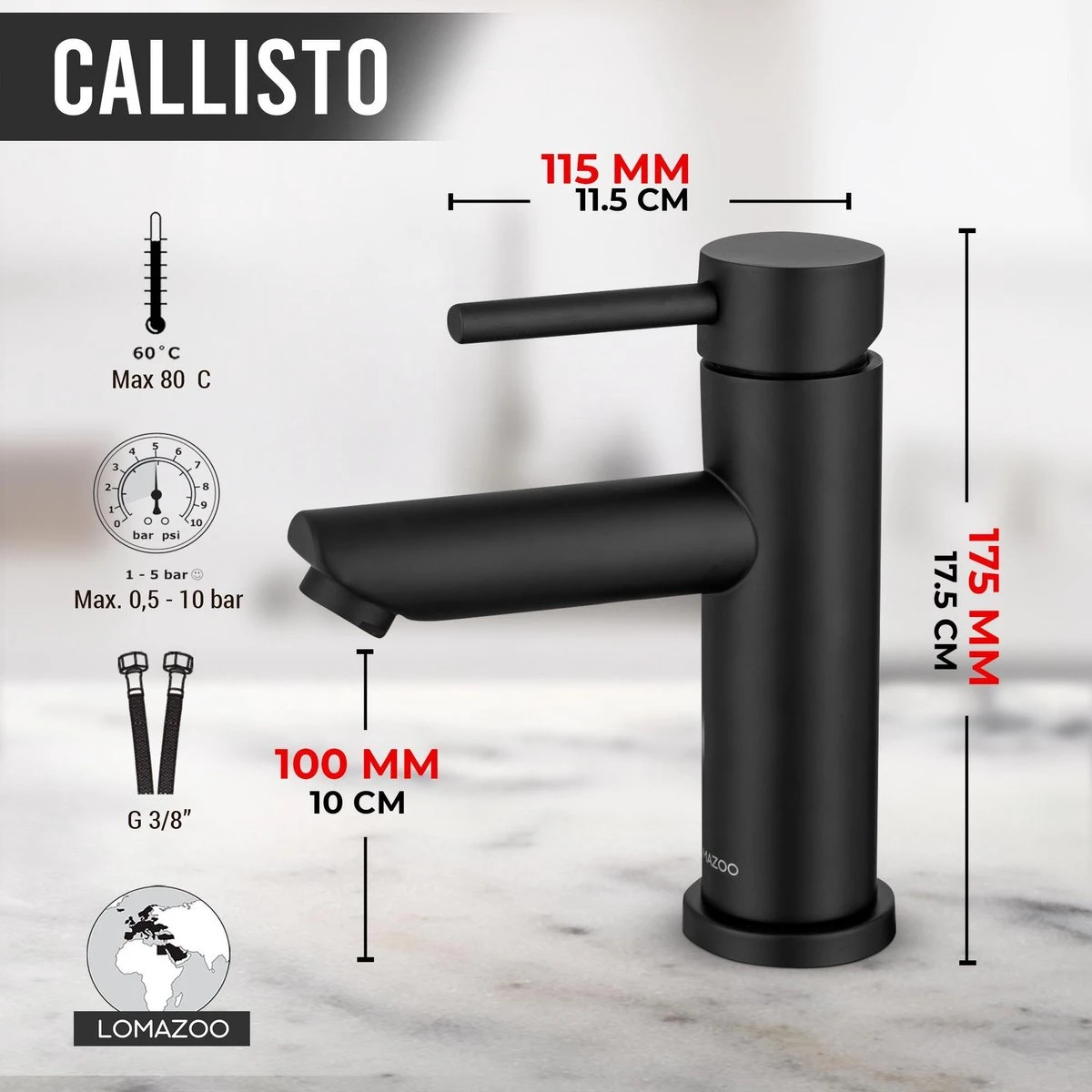 Ontdek wastafelkraan Callisto met premium matzwarte finish, waterbesparende functies én 5 jaar garantie. De mengkraan is onderhoudsvriendelijk en maakt het de ideale zwarte wastafelkraan voor het upgraden van jouw badkamer.