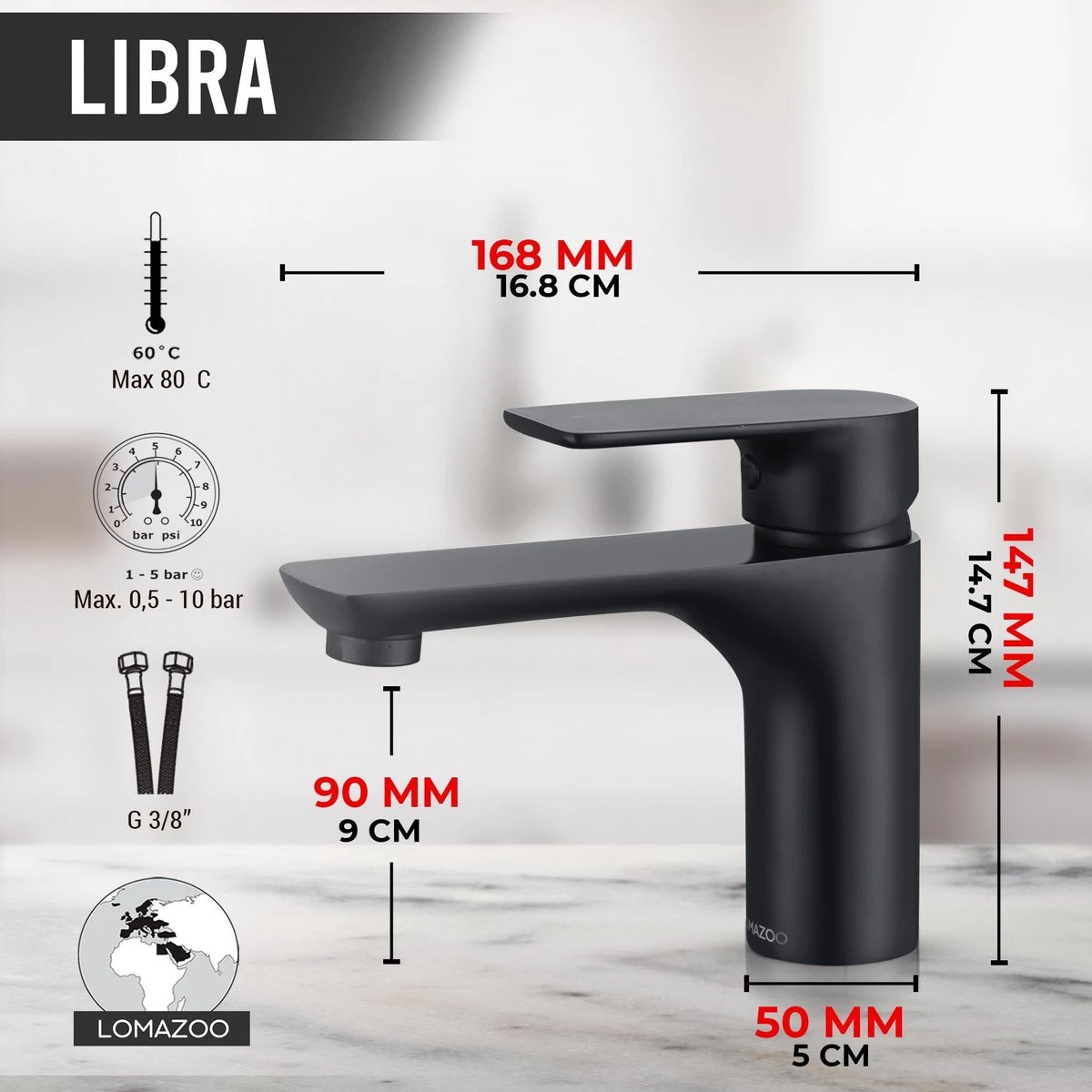 • LOMAZOO® wastafelkraan zwart Libra