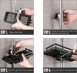 - Multifunctioneel – deze douchestandaard heeft meerdere gebruiksmogelijkheden. Het bespaart veel ruimte en houdt je badkamer schoon en opgeruimd. Dit multifunctionele rek is voor shampoo, douchegel, douche, handdoeken enz.