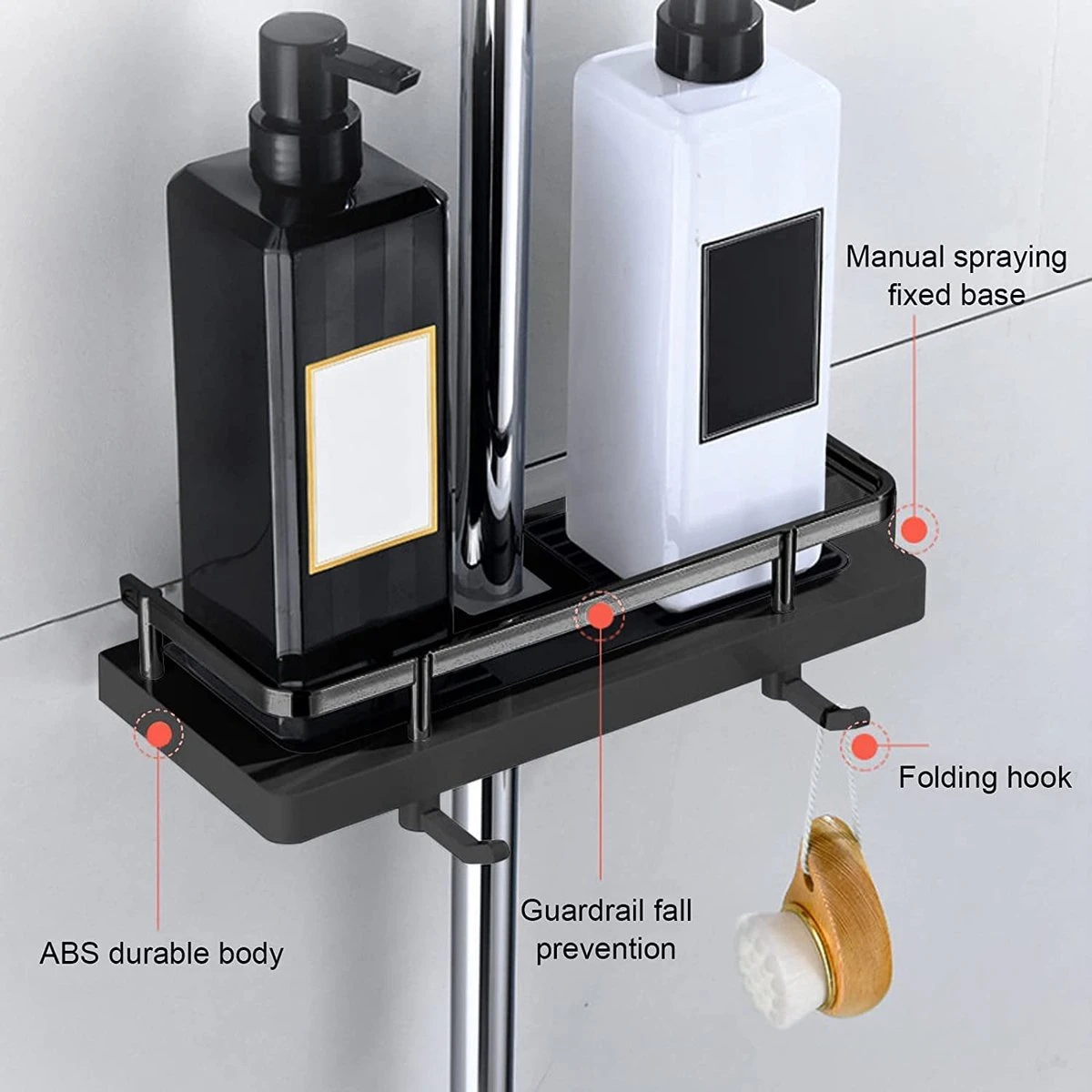 - Eenvoudige installatie: snelle en eenvoudige installatie zonder boren. De afneembare bodemplaat helpt om het droog en schoon te houden. Door de verstelbare klem voor iedere douchestang geschikt.