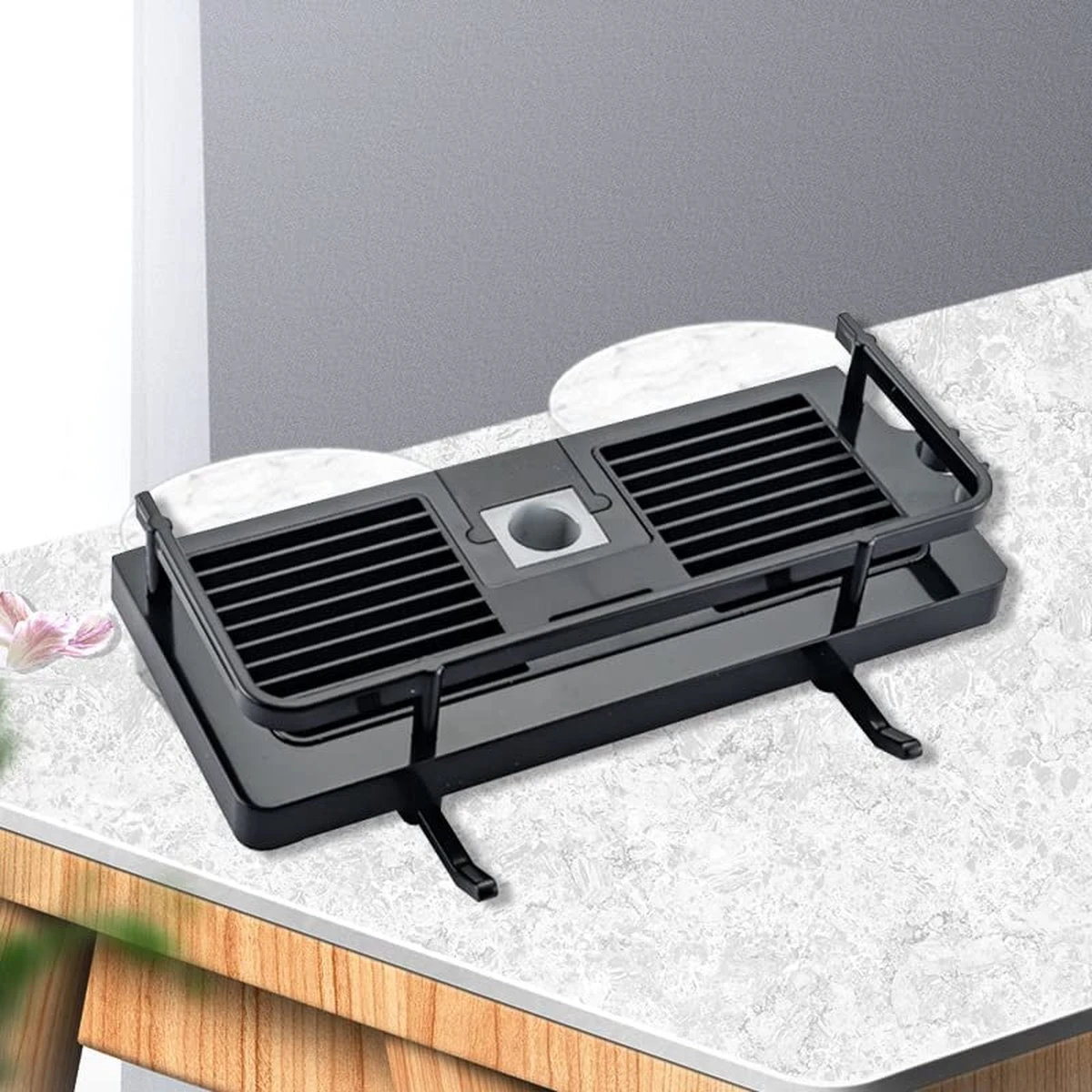 - Veiligheidsrek van roestvrij staal: dit product is uitgerust met een roestvrijstalen hek, het gespdesign helpt om het te zekeren en te voorkomen dat voorwerpen per ongeluk vallen en mensen verwonden. De bodemplaat is uitgehold om waterophopingen te voorkomen.