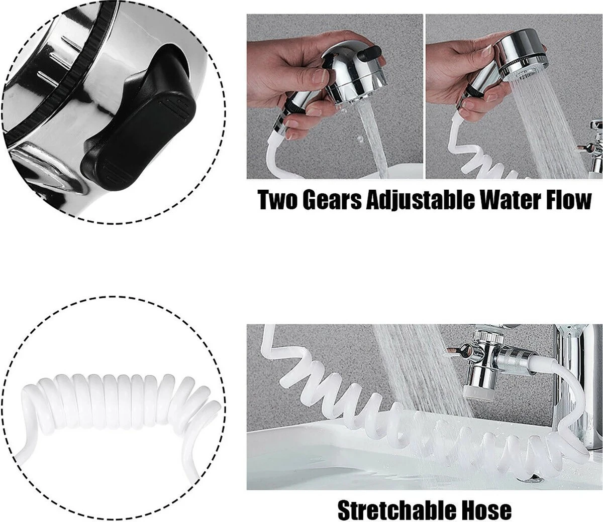 - Functionele handdouche: Wordt geleverd met een handdouche met 2 functies en een bidet hogedrukdouchekop waarmee u snel en eenvoudig kunt overschakelen naar uw favoriete modus.