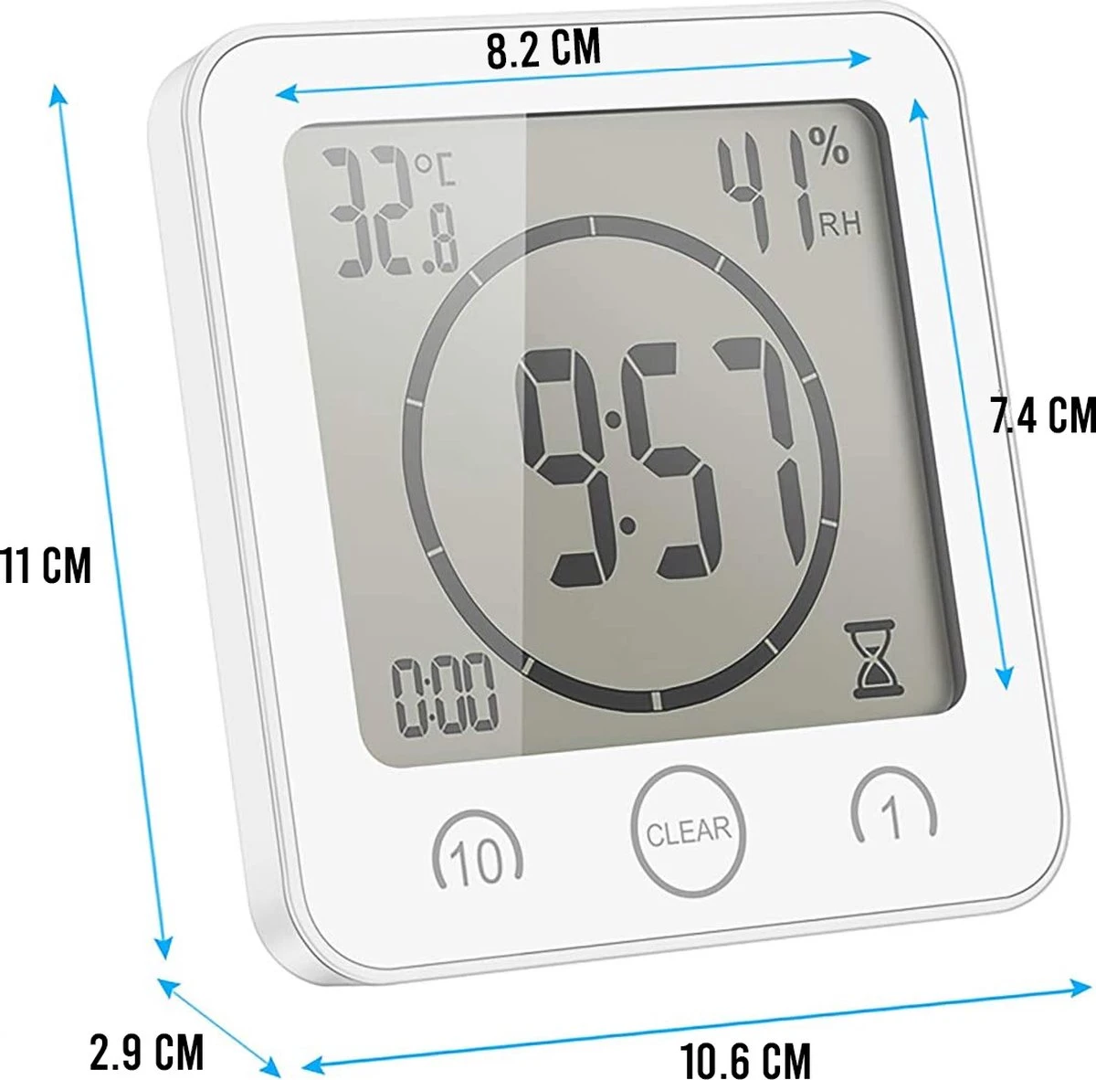 Wil jij water én tijd besparen tijdens het douchen? Deze 4-in-1 douchetimer van Podec helpt je daarbij. De douche klok heeft een overzichtelijk lcd scherm. Daarop kun je de tijdweergave, temperatuur, luchtvochtigheid, tijdsindicatie (zandloper) en aftelfunctie zien. Met deze showertimer bespaar je niet alleen water, maar draag je ook bij aan een beter klimaat!