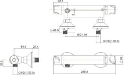 - • De chromen douchethermostaat is voorzien van twee grepen waarmee je de temperatuur en het watervolume regelt. Saqu