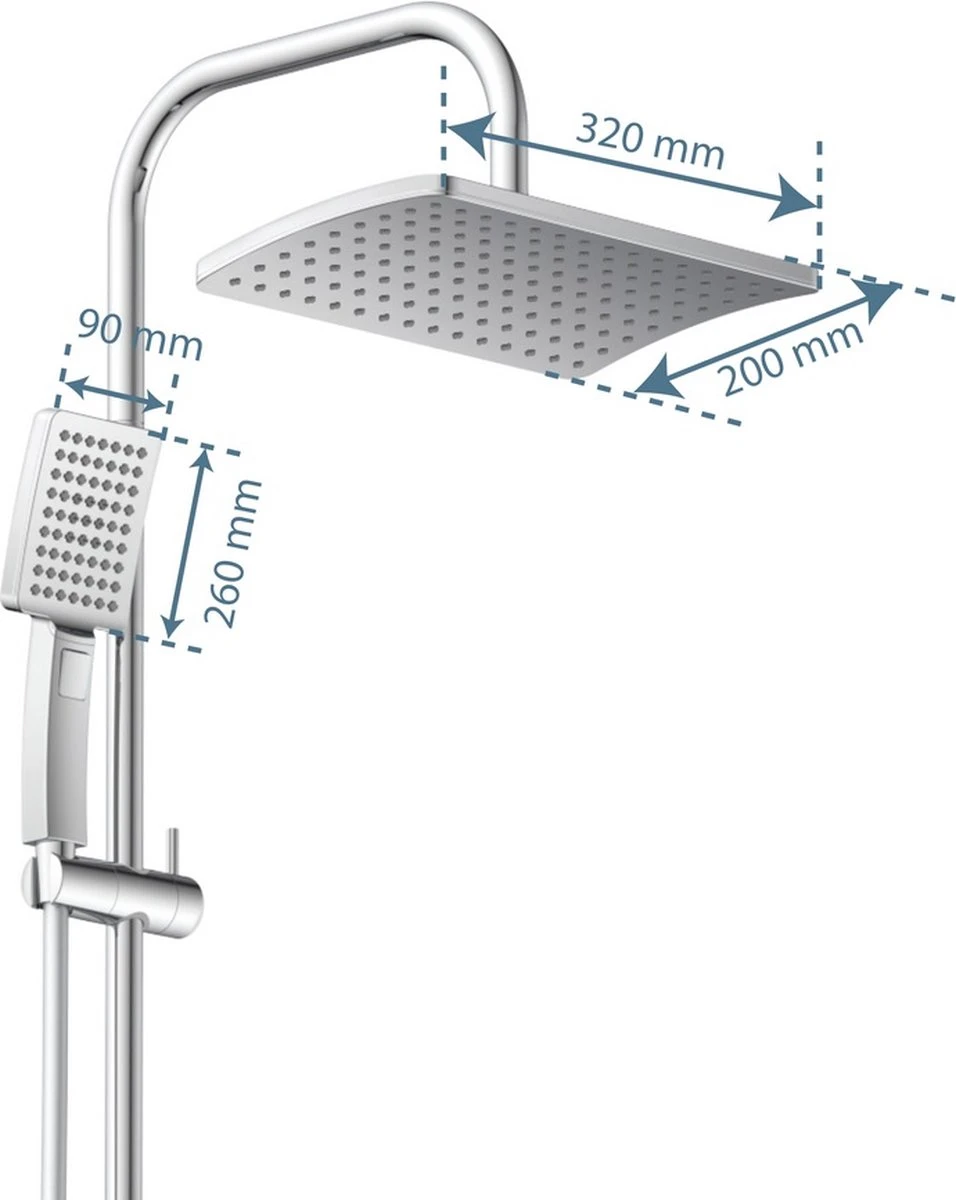 • handdouche: ca. 25 x 9 x 3,5 cm, 3 functies