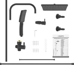 | Verpakkingsinhoud | Hoofddouche, glijstang, handdouche, doucheslang, wandhouders, toebehoren en montage handleiding in diverse talen o.a. Nederlands |
