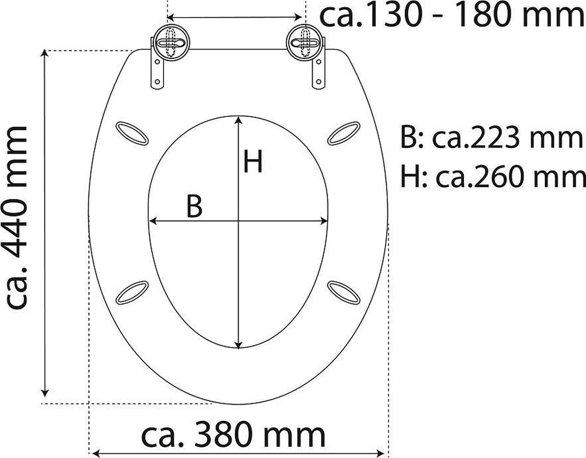 | Verpakkingsinhoud | Toiletzitting, scharnieren, schroeven, montagehandleiding in diversen talen o.a. in het Nederlands |