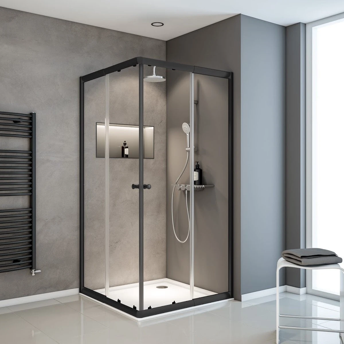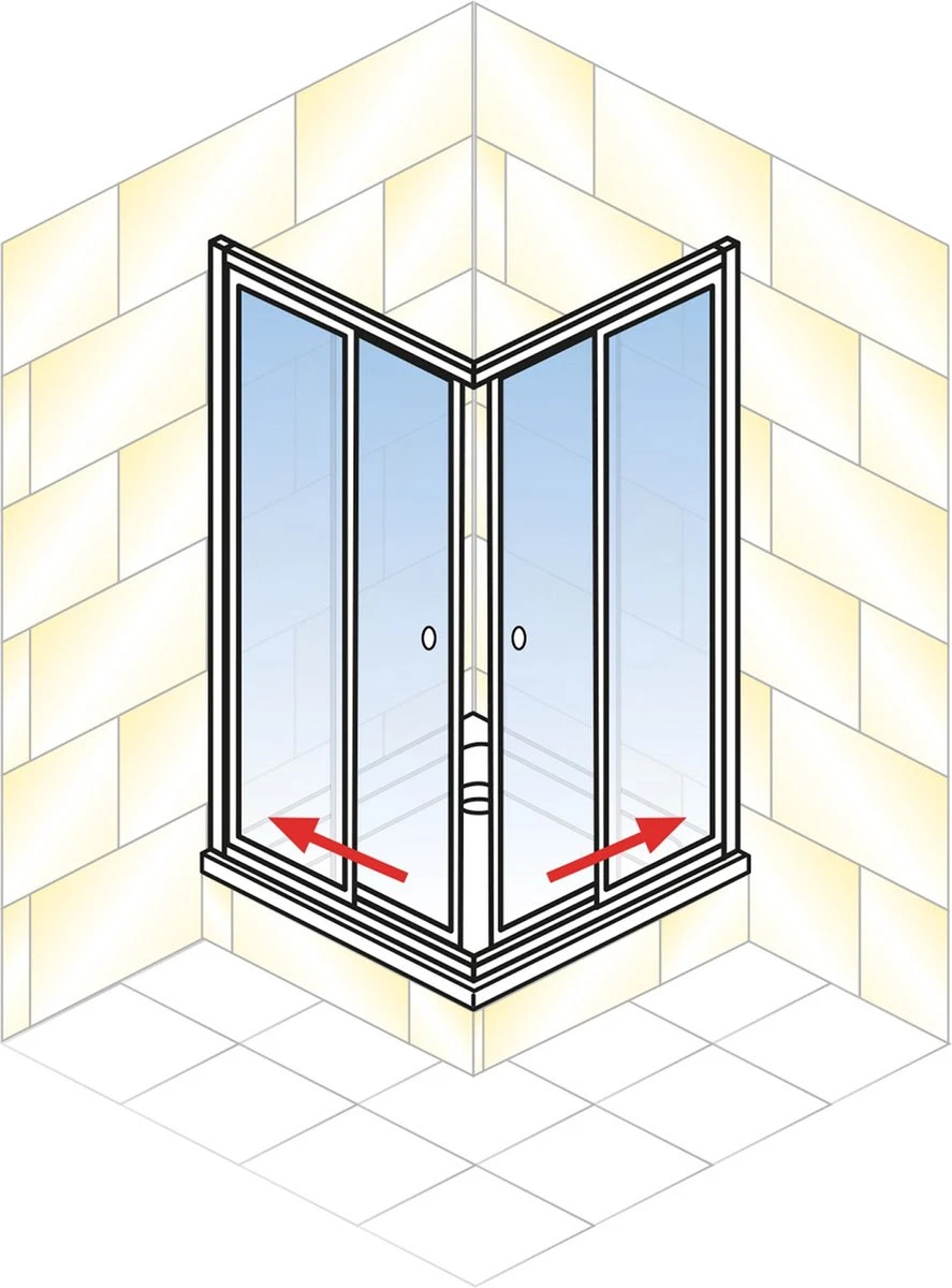 Ruimtebesparend rondom uw douchebereik door de schuifdeuren.