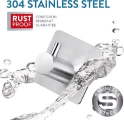 Set van 6 heavy duty zelfklevende ophanghaakjes. Deze haakjes zijn te bevestigen op iedere vlakke ondergrond en zijn voorzien van een supersterke plakstrip met een draagvermogen tot liefst 8kg. Ideaal voor het ophangen van handdoeken, kleding, jassen, sleutels, keukengereietc. Omdat de haken vervaardigd zijn uit robuust roestvrij staal kunnen ze ook gebruikt worden in ruimtes met een hoge luchtvochtigheid zoals de badkamer.