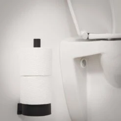 De reserverolhouder uit de Tiger Bold serie is uitgevoerd in de kleur mat zwart en biedt plaats aan twee rollen toiletpapier. Met dit accessoire zijn extra rollen toiletpapier op fraaie wijze op te bergen nabij het toilet zodat er altijd voldoende toiletpapier beschikbaar is. De bijgeleverde bevestigingsmaterialen zijn na montage van de reserverolhouder over het muurplaatje niet meer zichtbaar. De Bold serie bevat naast deze reserverolhouder een groot aantal aanvullende accessoires voor de badkamer of het toilet. Dit artikel is ook geschikt voor TigerFix type 2, waarmee accessoires snel en eenvoudig op een gladde, harde ondergrond te bevestigen zijn door middel van een gepatenteerd lijmsysteem. Boren is niet noodzakelijk en de accessoires zijn eenvoudig te verwijderen zonder dat er resten op de ondergrond achterblijven. TigerFix is apart verkrijgbaar.