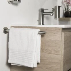 Het telescopische handdoekrek uit de Tiger Boston serie is uitgevoerd in de kleur RVS borsteld en is uitschuifbaar tot 60 cm. Het artikel biedt plaats aan één handdoek en is eenvoudig aan de wand te monteren waarbij de bijgeleverde bevestigingsmaterialen niet zichtbaar zijn. Doordat het handdoekrek loodrecht op de wand staat is het een ideaal en ruimtebesparend artikel voor gebruik naast een wastafel.