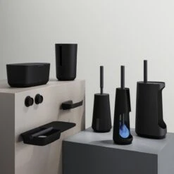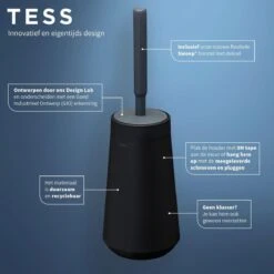 Een fris en modern gevoel in toilet of badkamer dankzij deze zwarte wc-borstelhouder van Tiger Tess. Hang hem aan de muur of zet hem neer. Plak of monteer hem met schroeven en pluggen. Het is helemaal aan jou.