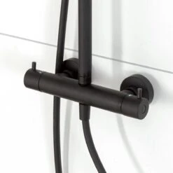 Talentvol Twiss. Twiss verwijst naar een rivier die zijn oorsprong vindt in de regio van Yorkshire. Maar deze set is alles behalve een kabbelend beekje. Dankzij de douchekop van 30 cm doorsnede mis je geen enkele waterstraal. Twiss is onze nieuwe favoriet en zijn veelzijdigheid ongekend. De handdouche heeft maar liefst 3 waterstralen, waaronder een heerlijke massagestraal. Zowel de regendouchekop als de handdouche zijn draaibaar en ook in hoogte verstelbaar, waardoor altijd de juiste positie kan worden ingesteld. De zwarte afwerking geeft het een industriële vibe en de ultieme wow factor in jouw badkamer. Begin de dag comfortabel en ontspannen.