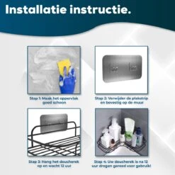 Het zelfklevend doucherek van Via Fectio® is eenvoudig te installeren met de bijgeleverde installatieset en digitale handleiding. De installatieset bestaat uit 2 sterke plakstrippen met afgewerkt met een metaallook. Deze plakstrip is waterbestendig en zorgt ervoor dat je niet hoeft te boren in je doucheruimte. Hierdoor blijven de muren in de badkamer netjes en kun je gemakkelijk alle douche spullen opbergen.