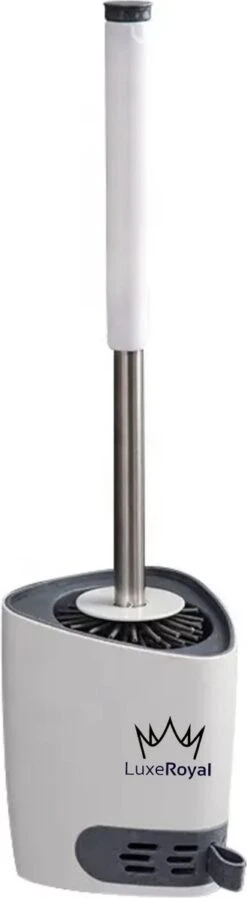 De toiletborstelhouder heeft een gleuf aan de zijkant en aan de houder zit een zelfklevende haak waarmee deze aan de muur kan worden bevestigd. De compacte toiletborstel en houder kunnen ook op de grond blijven staan als u dit prefereert. Het is uw vrije keuze! De LuxeRoyal toiletborstelhouder heeft een verborgen ventilatieontwerp, waardoor hij handig kan worden gereinigd, gedroogd en afgevoerd. Het ontwerp van de houder en borstel zijn strak waardoor hij mooi in uw toilet of badkamer staat.