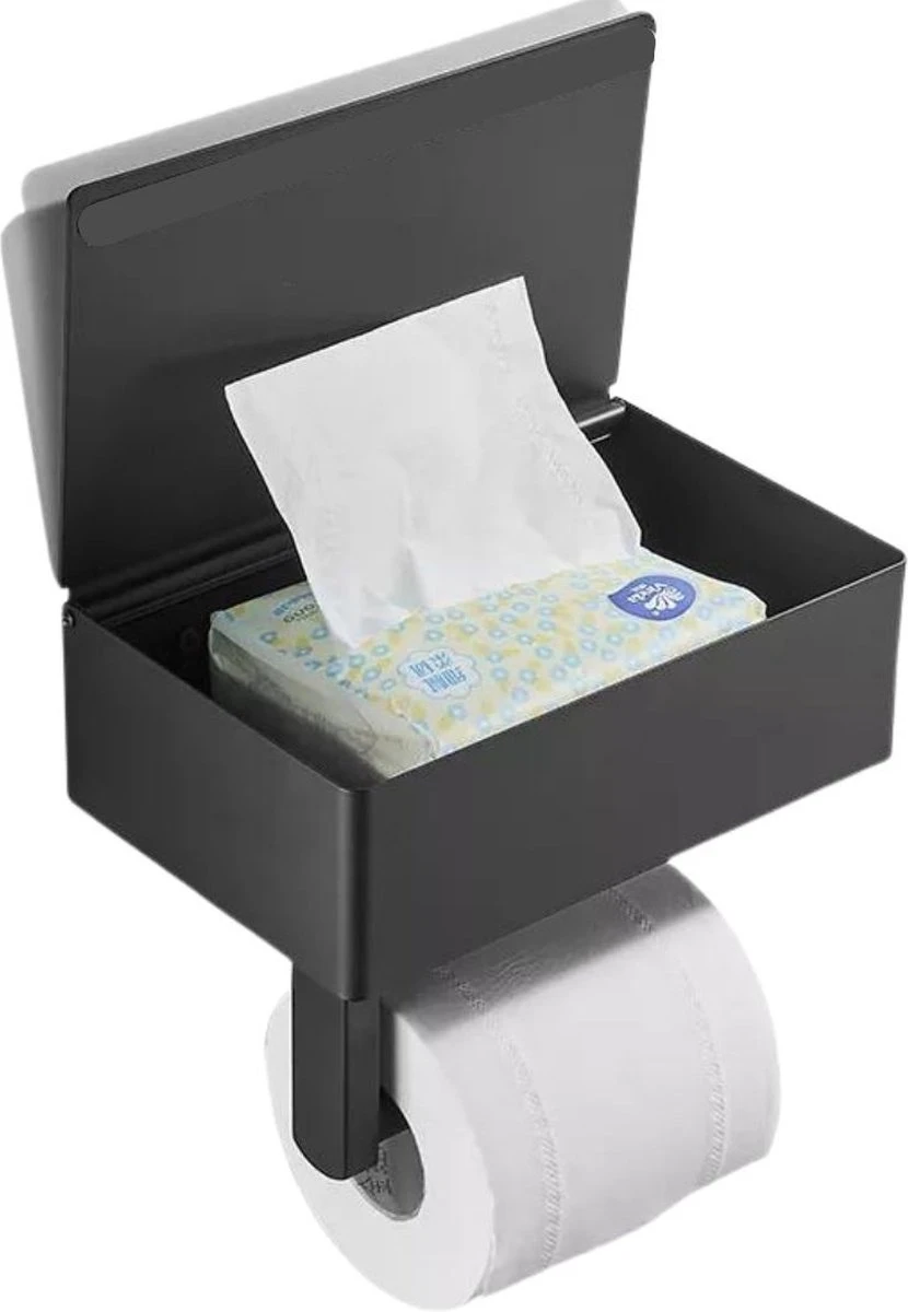 Toiletrolhouder met plankje en bakje voor uw toiletaccessoires.